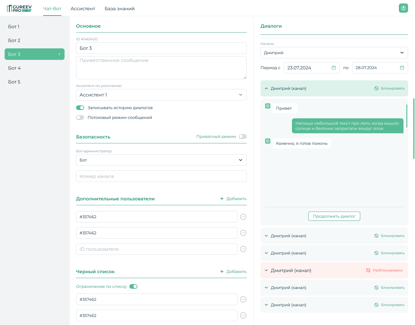 Локально разворачиваемый сервис с глубокой кастомизацией, позволяющий интеграцию Telegram и других сервисов с базами знаний и каталогами продукции. Фреймворк поддерживает использование как базовых, так и дообученных моделей, таких как ЯндексGPT и GigaChat. Система обеспечивает гибкую настройку доступа к различным системам, легко интегрируется с текущей БД на PSQL и может хранить до 1000 документов на одного ассистента. Настройка эмбеддингов позволяет использовать как базовые, так и дообученные модели для создания векторных баз данных.